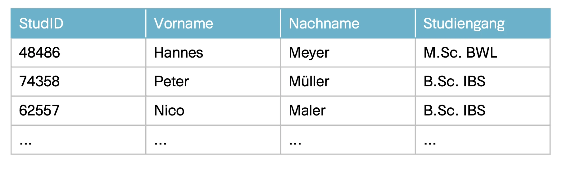 - Ein Student wird mit einer StudID eindeutig identifiziert.